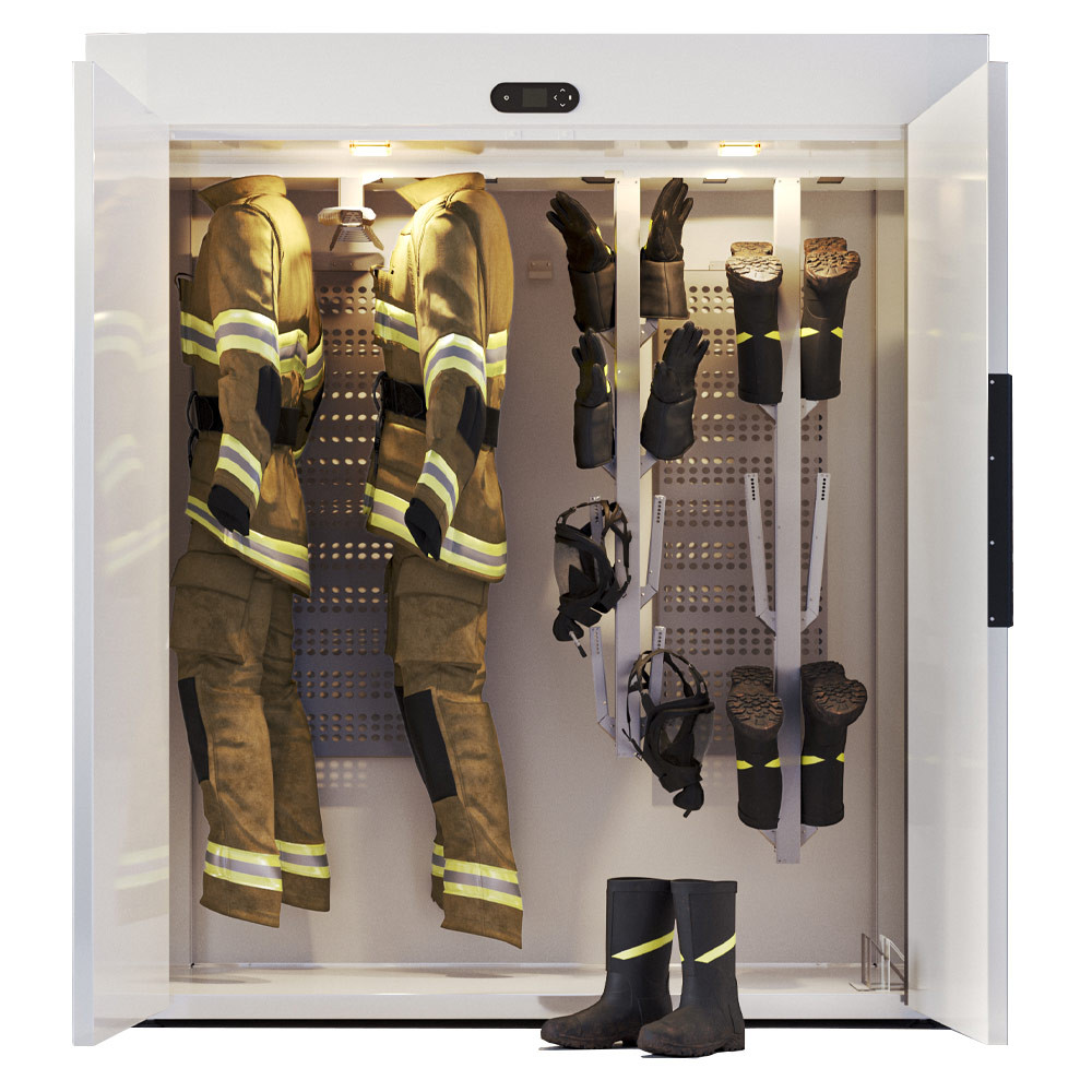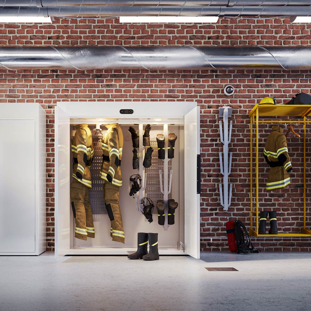 Der Trockenschrank Schutzkleidung PSA wurde speziell für professionelle Einsatzbereiche wie Feuerwehr, Rettungsdienst und Zivilschutz entwickelt.