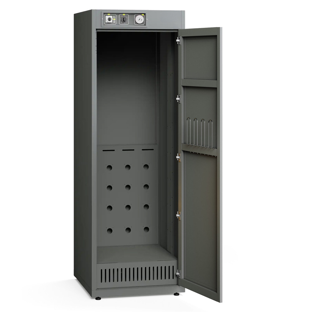 Der Trockenschrank Warmluft 8 Arbeitsjacken und Arbeitshosen ist für den täglichen Einsatz in Umkleiden, Werkhöfen und Betrieben mit hohem Kleidungsdurchlauf konzipiert. In allen Räumen ab einer Temperatur von 15 °C trocknet er bis zu 8 Jacken oder Hosen gleichzeitig und sorgt dank Warmlufttrocknung für kurze Trocknungszeiten. Ideal geeignet für Feuerwehr, Polizei, Bau- und Forstbetriebe, Werkhöfe sowie Sportanlagen.