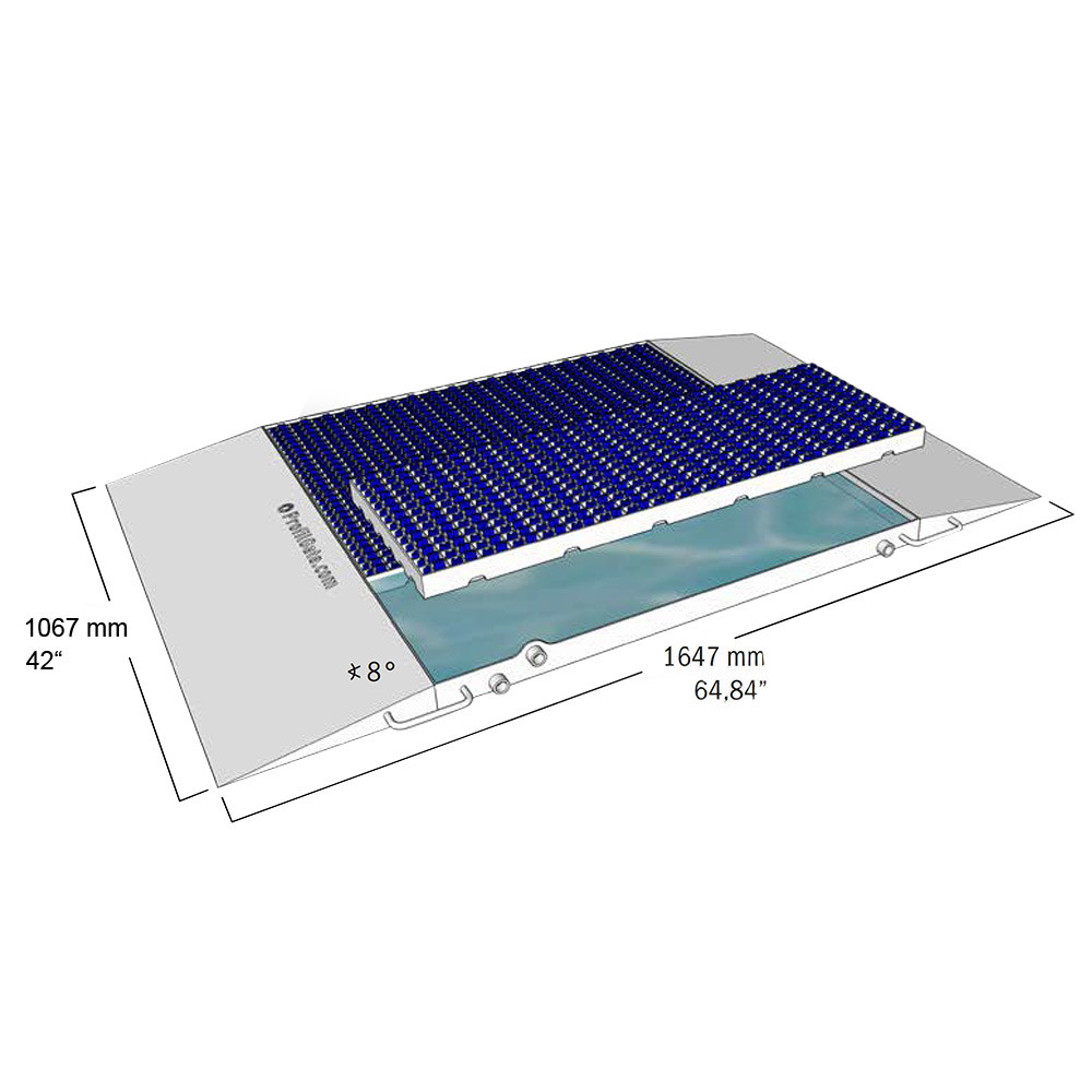 Données techniques Boîtier: bac et grilles en acier inoxydable (1.4301)Nombre de caillebotis - poids: SHORT: 3 x 23 kg LONG: 6 x 23 kgBarres à brosses par caillebotis: 14Dimensions du bac, rampes comprises: SHORT: 1067 mm x 1647 mm x 50 mm (largeur x longueur x profondeur) LONG: 1067 mm x 2626 mm x 50 mm (largeur x longueur x profondeur)Dimensions de la zone de nettoyage: SHORT: 1067 mm x 974 mm (largeur x longueur) LONG: 1067 mm x 1945 mm (largeur x longueur)Poids maximal admissible: jusqu'à 800 kg praticableConvient aux roulettes dures et étroites: OuiLargeur de roulette adaptée: ≥ 24 mmCapacité en eau: SHORT: 22 L LONG: 44 LAlimentation électrique: non nécessairePoids (sans grilles): SHORT: 65 kg LONG: 126 kg