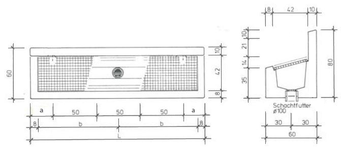 Boîtier: lavoir à béton Grille: caillebotis galvanisés à chaud Dimensions: version pour 2 stations de nettoyage