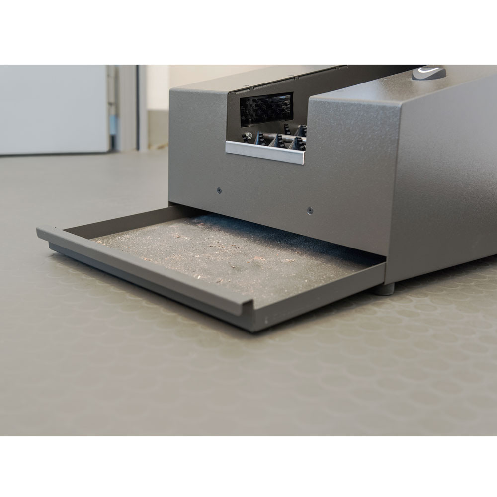 Le puissant moteur 230 volts est démarré par un léger contact du pied avec le capteur capacitif. Les 750 tours/minute permettent une vitesse de rotation idéale des brosses cylindriques, des brosses rondes et des brosses à disques. La courroie crantée extrêmement robuste garantit un entraînement optimal des brosses. Grâce à la minuterie intégrée, la machine s'arrête automatiquement lorsqu'elle n'est plus utilisée.