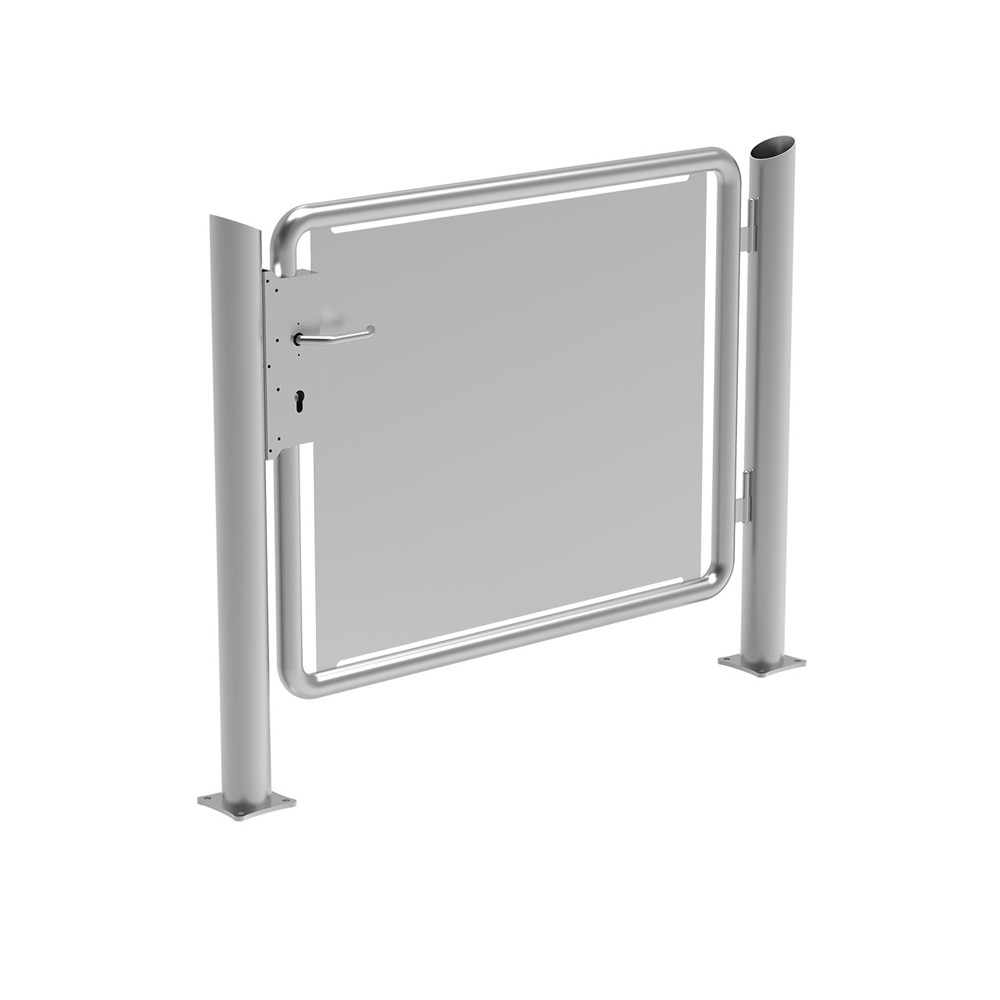 Notre porte en acier inox, fabriquée en tube rond d'acier inoxydable (Ø 42x2 mm, qualité 1.4301), est extrêmement durable et résistante. Grâce à sa fabrication de haute qualité, elle résiste aux influences extérieures. Trois versions sont disponibles: la porte en acier inox avec sangle de genou, avec tôle de remplissage ou avec entretoises verticales. Sur demande, les largeurs peuvent en outre être fabriquées sur mesure et répondre ainsi aux exigences individuelles. La porte est équipée de robustes montants tubulaires. Cette construction permet un montage flexible et garantit un montage au sol sûr et durable. Pour une utilisation confortable, la porte est équipée en standard d'une poignée d'un côté et d'un bouton ergonomique de l'autre. Sur demande, la porte peut être équipée de poignées des deux côtés.