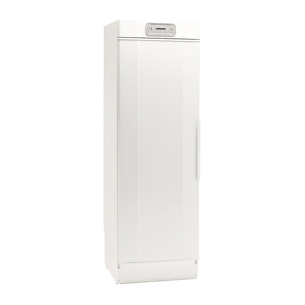 Le boîtier en acier galvanisé est robuste, durable et résistant à la corrosion. L'armoire ne nécessite pratiquement aucun entretien et doit seulement être nettoyée régulièrement. Les charnières de porte peuvent être montées à gauche ou à droite (voir options). L'air humide est évacué par des ouvertures situées sur le dessus de l'armoire.